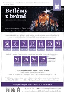 Staroboleslavská brána s unikátní expozicí betlémů ze soukromé sbírky manželů Hanžlíkových je v roce 2025 v době adventních víkendů a v době vánočních svátků zpřístupněna v těchto časech: