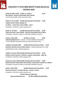Koncerty v Poutním místě Stará Boleslav v sezoně 2026
